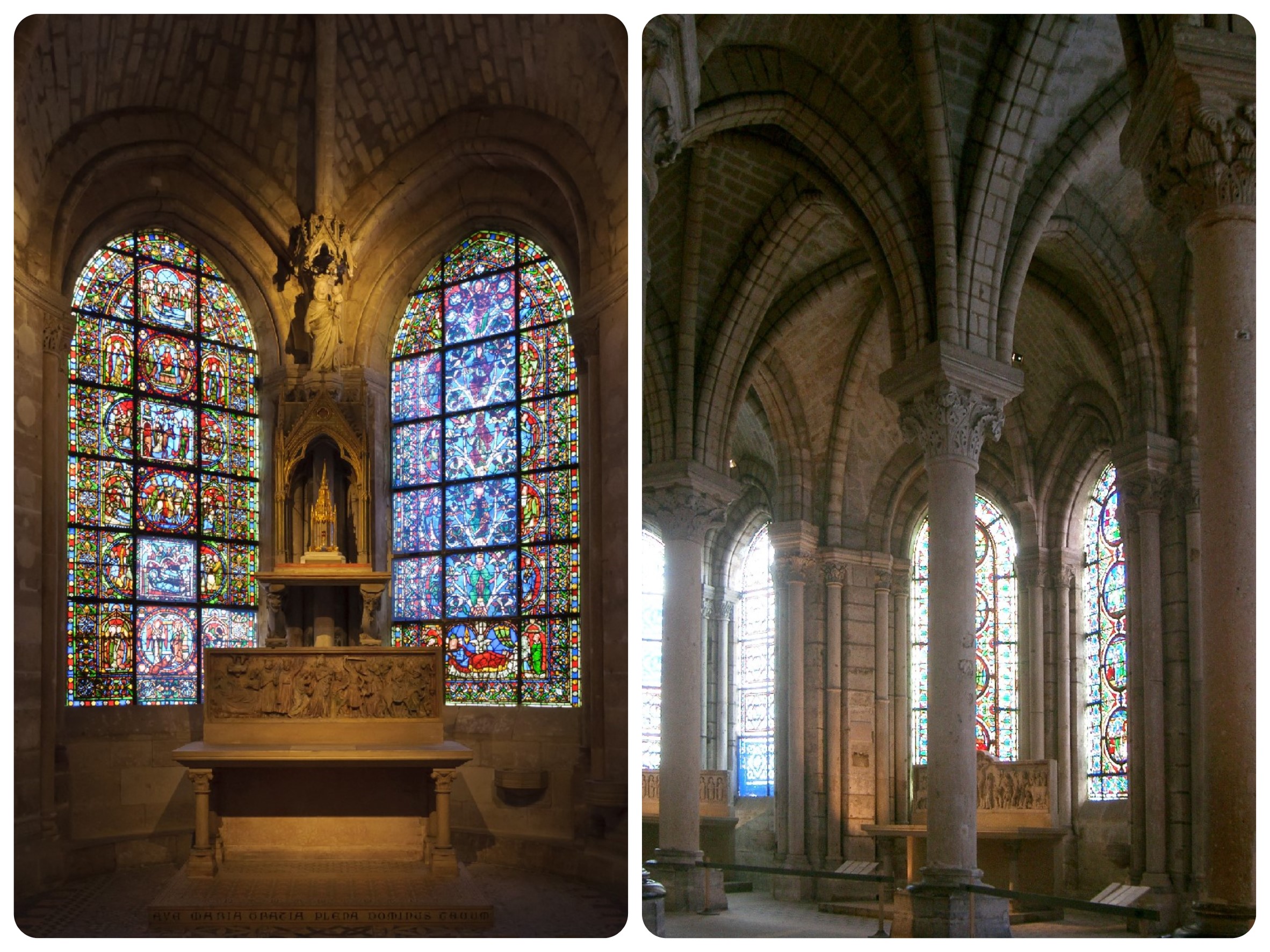 Powstały wnętrza bardzo wysokie, o wyraźnie zaznaczonych pionach i przestrzeniach między filarami, które wypełniano witrażami. Witrażami, które były bardzo drogie i wymagały hojnych sponsorów. A sponsor, jak to sponsor: wybitnie bezinteresowny nie jest. Pojawiały się więc na nich, poza figurami świętych również sylwetki rzemieślników przy pracy czy bogaczy, tak żeby szary lud nie miał wątpliwości komu dobra wieczyste cenniejsze niż złoto i klejnoty.